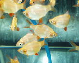 | SERPAESALMLER Hyphessobrycon callistus Herkunft: BRASILEN Haltung: Schwarmfisch etwas aggressiv, eierlegend mittelweiches Wasser, ph<7 Fischlänge: 4 cm 22-28°C, Aqu.länge: ab 60 cm |